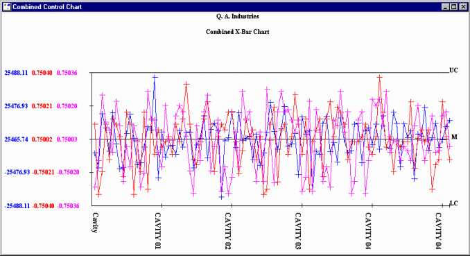For example, the following chart lines up data points where the Cavity number, Date/Time stamp, and Lot number are identical. It then sorts these points in order by Cavity number.