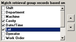 The Combined Control Chart will order the data points by the first field selected in the Match retrieval group records based on list. You can modify the order in which these fields are displayed in this list. To move an item up the list, click the row containing the item and then click the up
