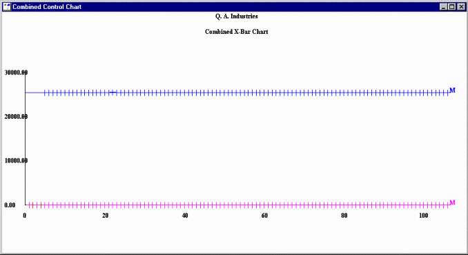 For example, a Combined Control Chart that is not scaled to normalize the measurement values may be of little value, as in the following example: