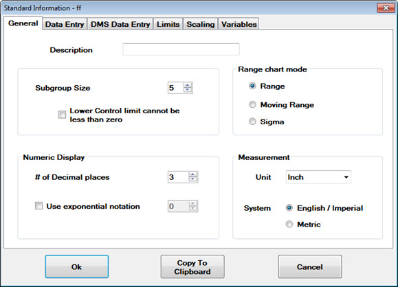 If you have rights, you can use the Standard Utility function in the GainSeeker Utility to import, export, or duplicate DMS standards or SPC standards or process specs you specify. You can also copy standards or process specs to another configuration using this utility.