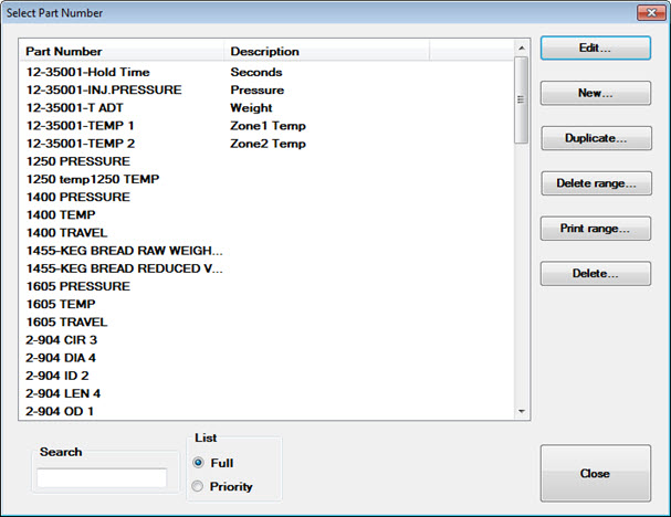 The Print range button on the Select Part Number window allows you to print standards for one or more records you select. You can print to the printer designated in your Windows printer setup or to your editor
