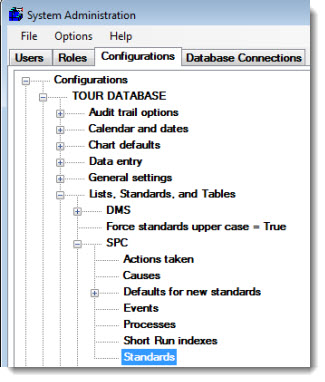 Configurations | (configuration name) | Lists, Standards, and Tables | SPC | Standards