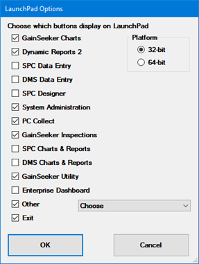 To change the version of GainSeeker Charts, change the Platform to 64-bit