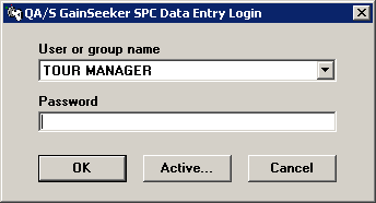 To view which users are logged in to GainSeeker, launch one of the primary GainSeeker modules. Before logging in, click the Active button.