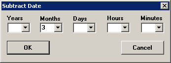 Right-click the Subtract amount node and enter the number of Years, Months, Days, etc. to subtract from the current date/time each time data is analyzed with the date period named Default low to today.