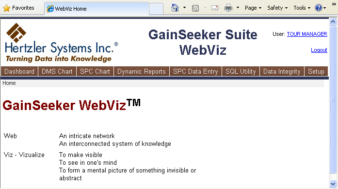 If GainSeeker WebViz does not find a home.htm file in this folder, it next tries to access the internet and retrieve the contents of www.hertzler.com/webvizhome.htm. And if it cannot access this page via the internet, then it uses the defaulthome.htm file in this folder.