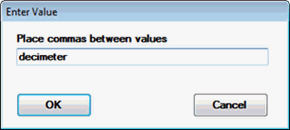 This setting displays an Enter Value dialog where you can add additional measurement units as a string (or remove them from the string). These measurement units are added (or removed from, if applicable) the list of available measurement units that display for that configuration on the SPC Standards Information dialog.