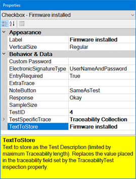 the TextToStore property (and the inspection property TraceabilityTest)