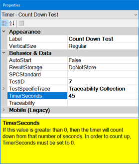 The options SPCStandard and Traceability store the timer value in seconds using the selected SPC standard (or traceability) selected in either of those properties. |