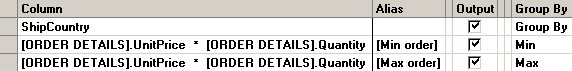 To specify criteria for a field that isn't used to define groupings, select the Where option. By default, this hides the field from the query result set. For a sample query using Where,