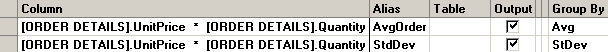 Options available in the Group By column include clause identifiers and aggregate functions.