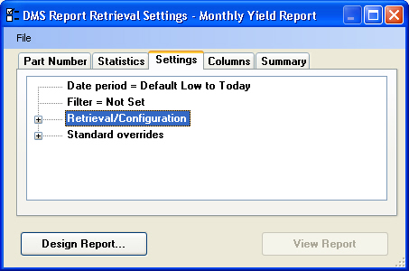 To apply different retrieval or statistical settings for this report or retrieval, click the Settings tab: