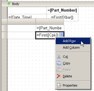 In the Body section of the layout area, click on the point where the upper left corner of the matrix should be placed - for example, just below the existing matrix that displays the date/time stamps and subgroup averages.