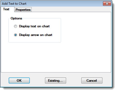 Click the Properties tab to specify details about how the arrow will display on the chart.