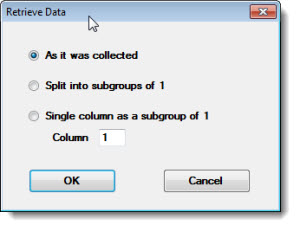 For example, if you choose to retrieve the third column when analyzing 100 data subgroups, the result will be data analysis for 100 data points with a subgroup size of 1.