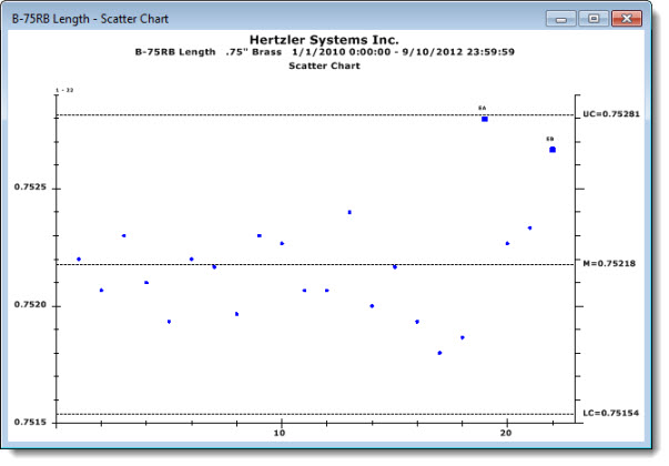 A Scatter Chart is a good tool for tracking trends and understanding process shifts over time. It can be used to spot a possible correlation between two variables that relate to the same event.