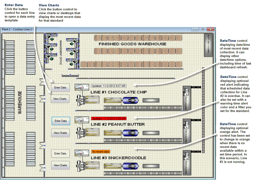 From the GainSeeker Charts window, you can create SPC charts, DMS charts, and OEE charts that offer a multitude of display and retrieval features.