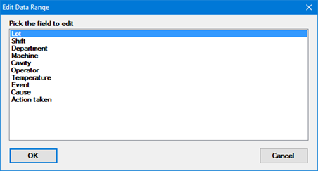 When prompted, select the traceability field or corrective action field that you want to edit for the selected range of data.