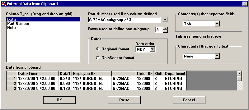 If you have data with a subgroup size of one stored in GainSeeker SPC that you would like to analyze in larger subgroups, follow the steps below: