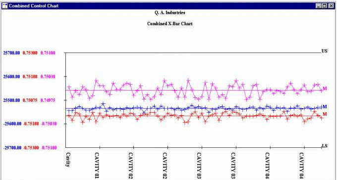 For example, the following chart lines up data points where the Cavity number, Date/Time stamp, and Lot number are identical. Then the points are sorted in order by Cavity number.