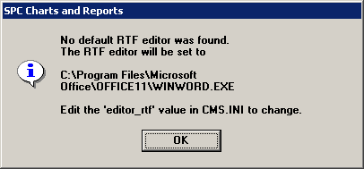 If the Cms.ini on this computer did not contain the editor_rtf= setting (for RTF format) or editor_html= (for HTML format), GainSeeker will automatically select a program, set the relevant Cms.ini setting, and display a message like the example below: