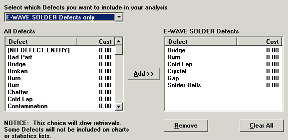 When you select a group of defects using "<process> Defects only," there is no need to press Add to move them to the right window.