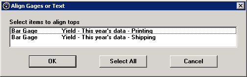 This method lets you align multiple items to the selected gage, text, or File or URL item: