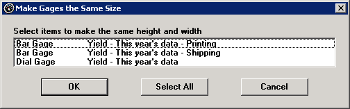 This displays a list of all the other Dial gages, Bar gages and File or URL items on this dashboard.