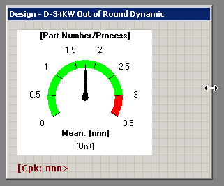 On the Design window for a KPI gage dashboard, there are two ways to change the size of the dashboard window: