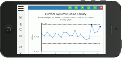 On a Control Chart, you can click a point that had real-time failures to see what failed for that point. You can also hover over a data point to view its value and the values of any limits and lines displayed (such as Control Limits and X-bar).