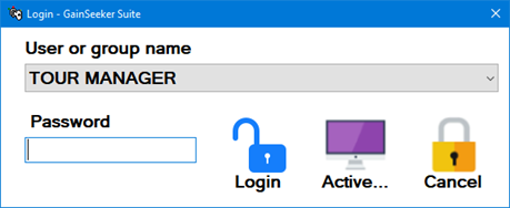 To view which users are logged in to GainSeeker, launch one of the primary GainSeeker modules. Before logging in, click the Active button.