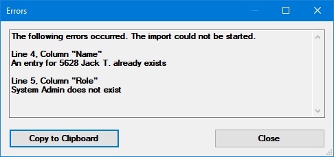 rename the existing GainSeeker user (for example, by prepending an abbreviation like "old-") or delete it before importing a fresh copy of the user from the file. Remember to recreate the original user name's priority lists and assignments (planned inspections, planned sessions, etc.) for the new copy of the user name.