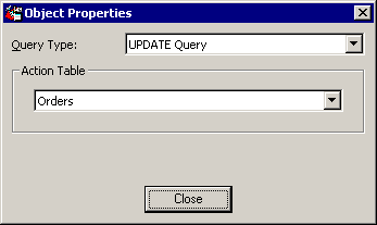 When building an INSERT, UPDATE or DELETE query, you must specify the Action Table that will be modified by this query. You can only choose from tables that have been added to this query.