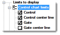 Displays these limits on a Control chart. Click a checkbox to select it or to clear it.