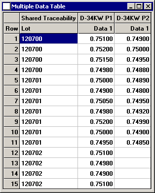 For example, the following chart lines up data points where the Cavity number, Date/Time stamp, and Lot number are identical. Then the points are sorted in order by Cavity number.