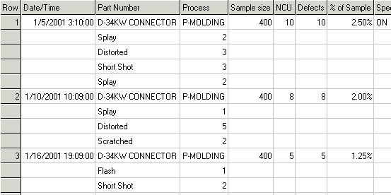 The Statistics list, Data table and Defect detail help you see the data used to produce the control chart.