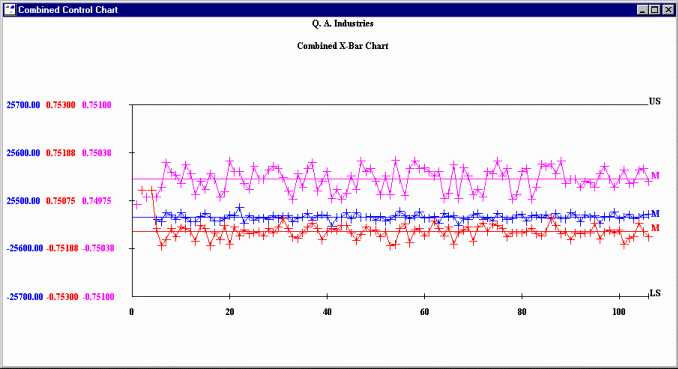 For example, a Combined Control Chart that is not scaled to normalize the measurement values may be of little value, as in the following example: